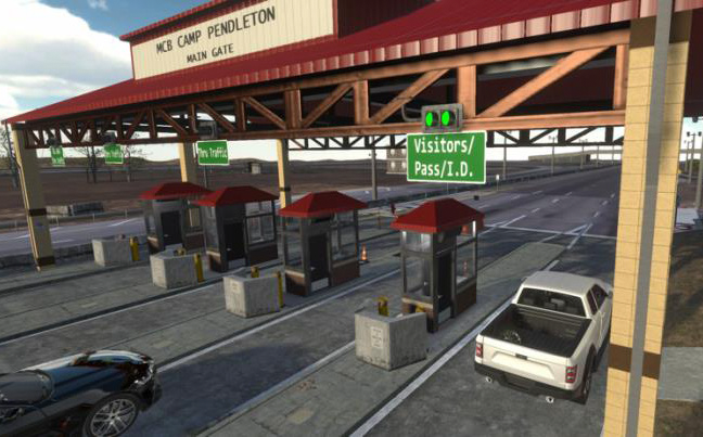 A base gate modeled exactly after a real gate at Marine Corps Base Camp Pendleton.