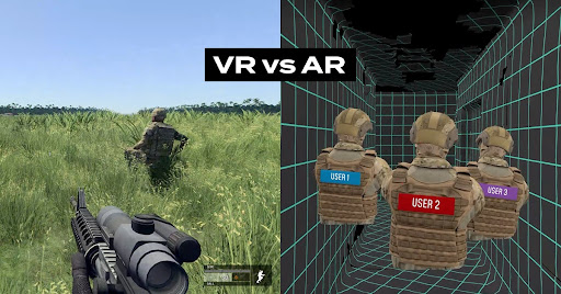 VR and AR are slightly different in the ways they are focused as applications. With virtual reality, the military primarily executes combat, vehicle, and medical training through the use of realistic simulations. Augmented reality, on the other hand, focuses on supplementing real-world environments with virtual data and insights during operational tasks.